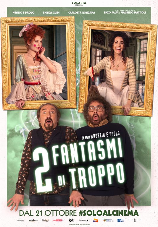 “2 FANTASMI DI TROPPO” segue la storia di due amici di vecchia data, Nunzio e Paolo, con alle spalle un passato lavorativo inconcludente i quali difronte all’ennesimo fallimentare espediente per guadagnarsi da vivere finiscono per indebitarsi con uno strozzino. Per uscire dalla brutta situazione in cui si sono cacciati, i due si lanciano in una strampalata impresa, ovvero diventano due medium arrangiati grazie alle capacità tecnologiche di Nunzio, andando così di casa in casa per dare la possibilità ai loro ingenui clienti d’incontrare i propri cari defunti, degli ologrammi che gli assomigliano. Ma cosa succederà quando un giorno Nunzio e Paolo si troveranno difronte i veri fantasmi della duchessa Gilda e della sua dama di compagnia Cettina?