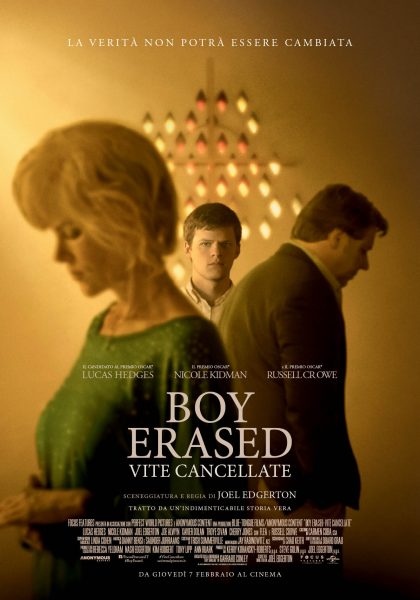 “Boy Erased – Vite cancellate” racconta la vera storia della crescita, della presa di coscienza e della dichiarazione della propria omosessualità di Jared Eamons (Lucas Hedges), figlio di un pastore battista di una piccola città dell’America rurale, che all’età di 19 anni ha deciso di aprirsi con i suoi genitori (Nicole Kidman e Russell Crowe), riguardo alle proprie preferenze sessuali. Temendo di perdere la famiglia, gli amici e la chiesa cui appartiene, Jared viene spinto a partecipare ad un programma di terapia di conversione. Mentre è lì, Jared entra in conflitto con il suo terapeuta (Joel Edgerton) e inizia per lui il viaggio alla ricerca della propria voce e per accettare il suo vero io.