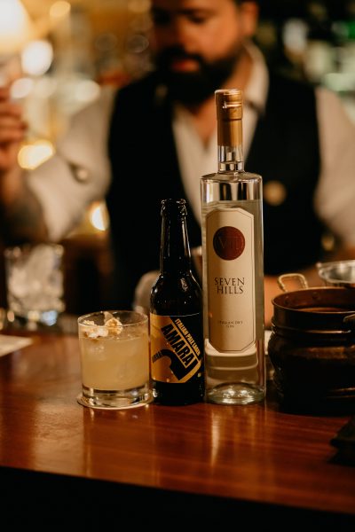 Versare il VII Hills Italian Dry Gin sui pop corn tostati, in modo da acquistarne sapore con un’infusione istantanea, aggiungere succo di limone fresco, sciroppo di sale, shakerare il tutto e versare il contenuto all’interno del bicchiere, ghiaccio e top di birra per terminare il drink.