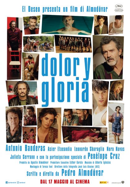 In “DOLOR Y GLORIA” racconta una serie di ricongiungimenti di Salvador Mallo, un regista cinematografico oramai sul viale del tramonto. Alcuni sono fisici, altri ricordati: la sua infanzia negli anni ‘60 quando emigrò con i suoi genitori a Paterna, un comune situato nella provincia di Valencia, in cerca di fortuna; il primo desiderio; il suo primo amore da adulto nella Madrid degli anni ‘80; il dolore della rottura di questo amore quando era ancora vivo e palpitante; la scrittura come unica terapia per dimenticare l’indimenticabile; la precoce scoperta del cinema ed il senso del vuoto, l’incommensurabile vuoto causato dall’impossibilità di continuare a girare film. “Dolor y Gloria” parla della creazione artistica, della difficoltà di separarla dalla propria vita e dalle passioni che le danno significato e speranza. Nel recupero del suo passato, Salvador sente l’urgente necessità di narrarlo, e in quel bisogno, trova anche la sua salvezza.