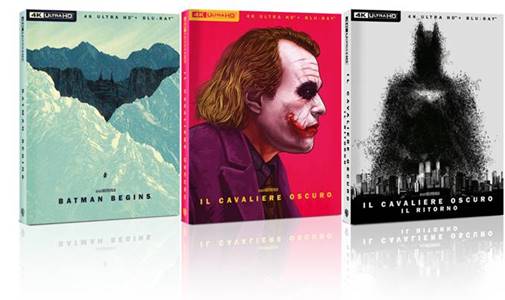 “Batman Begins”, “Il Cavaliere Oscuro” e “Il Cavaliere Oscuro – Il Ritorno” saranno disponibili in questa edizione limitata da 1000 pezzi. Tre inediti cofanetti in cartoncino, composti da slipcase e digipack, che includeranno 3 dischi ciascuno: il film in versione 4K Ultra HD, il film in Blu-ray, i contenuti speciali in Blu-ray. La copertina di ognuno dei cofanetti sarà illustrata con le esclusive grafiche realizzate dagli artisti della MONDO, il collettivo di creativi specializzati nella creazione di artwork unici, ispirati al mondo di cinema, comics e serie tv – da “Il Trono di Spade”, passando per l’universo fantastico dei film targati Studio Ghibli, fino ai supereroi della DC Comics.